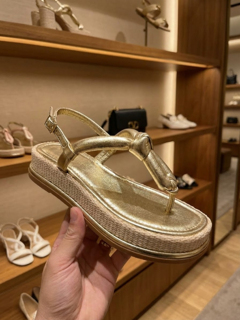 A Sandália Plataforma Nó Gold é perfeita para quem quer unir conforto, elegância e um toque de brilho no visual. Aproveite o frete grátis e o envio imediato da Islan Shoes e destaque-se em qualquer ocasião!